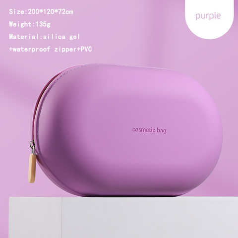 Elegant Purple Silicone Waterproof Makeup Bag Girl's for Toiletry Organizer for Beauty Essentials Zipper Closure